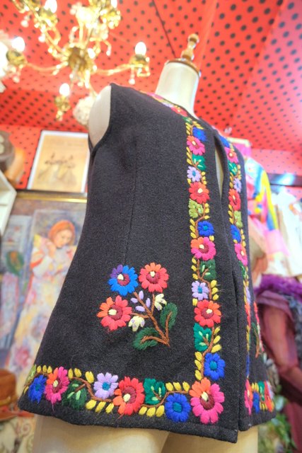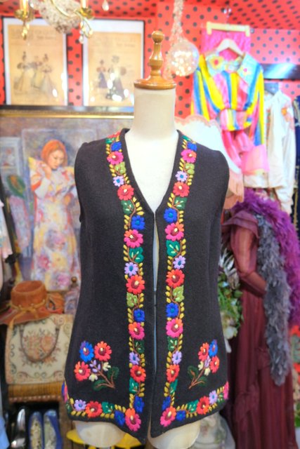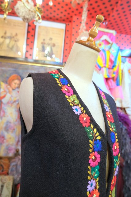 ヨーロッパ古着70s花柄刺繍レトロヒッピーベスト