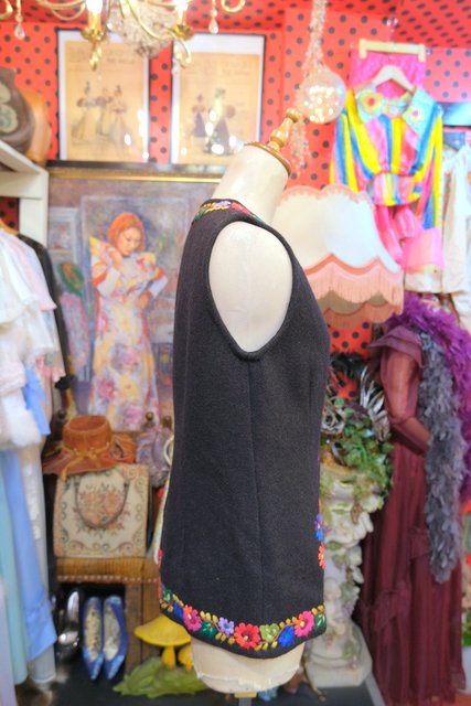 繊細で色鮮やかな花柄刺繍が魅力的な1970年代頃のヨーロピアンヴィンテージベスト