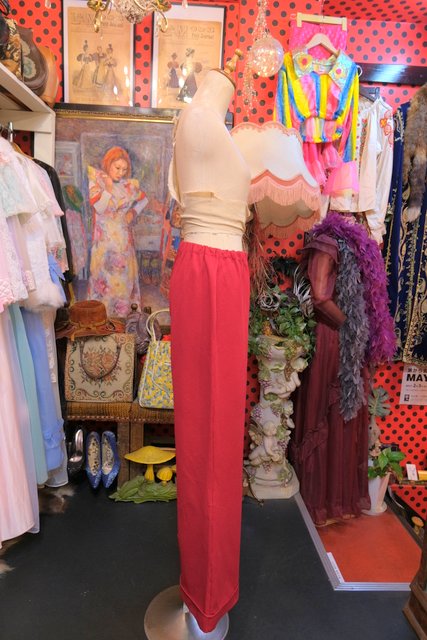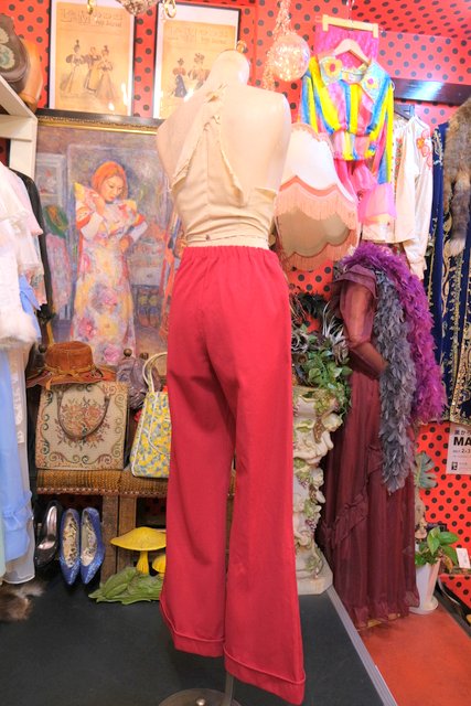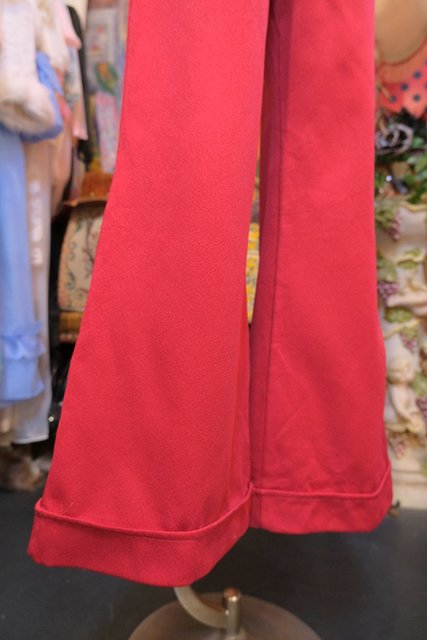 伸縮性のある履き心地のよい生地にレトロなガーネットカラーや裾のフレアデザインが魅力的な1970年代頃のヨーロピアンヴィンテージパンツ