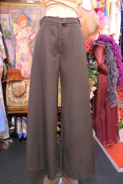 大人っぽくキレイめな印象のフレアデザインに三角のベルトループがお洒落な1970年代頃のフランス製ヴィンテージフレアパンツ