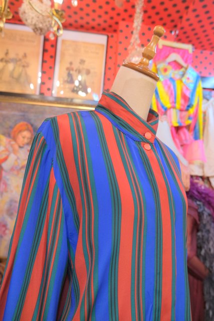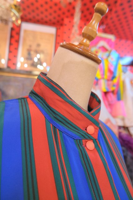 クールな印象のスタンドカラーにマルチストライプデザインがお洒落な1980年代頃のフランス製ヴィンテージブラウス