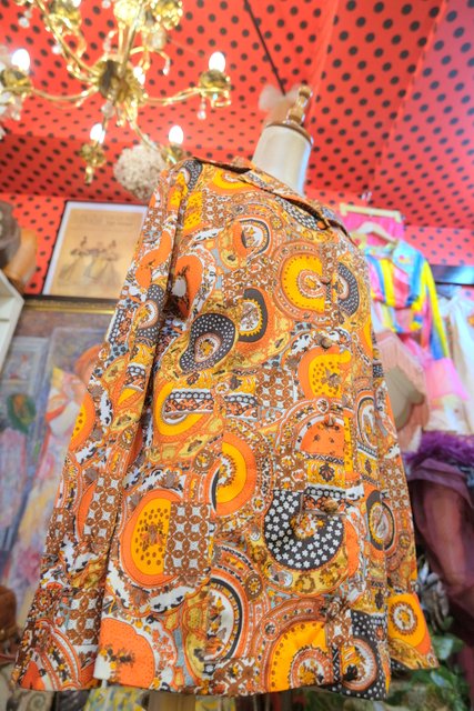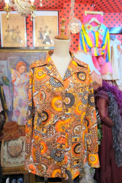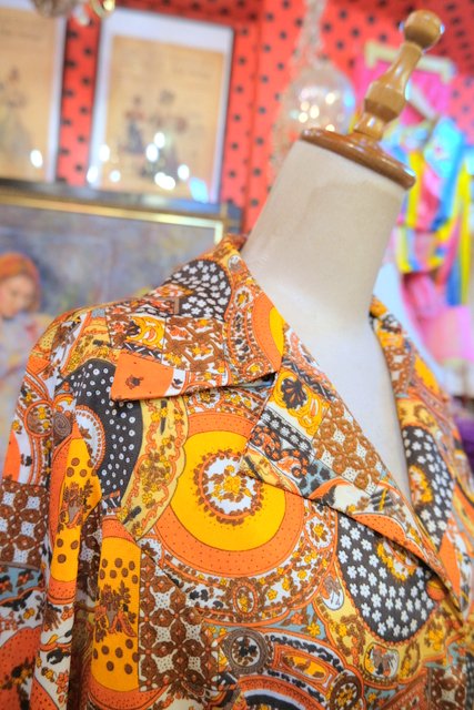 ヨーロッパ古着70sフランス製レトロポップ水玉シャツ