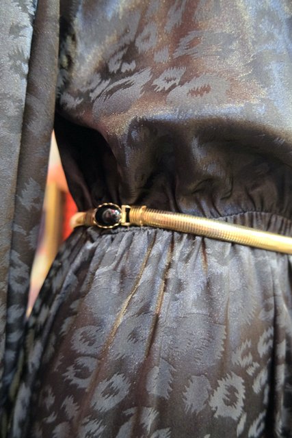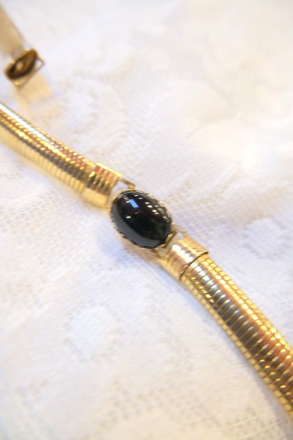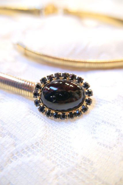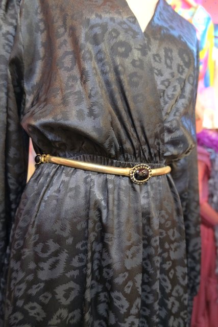 シンプルクローズのアクセントのおススメなヨーロピアンチェーンベルト ゴールド×ラインストーン付きのブラックビジューがお洒落!