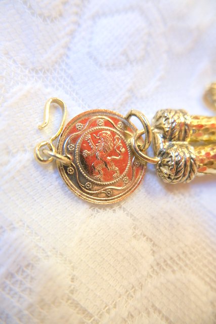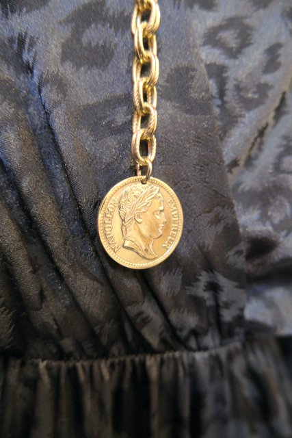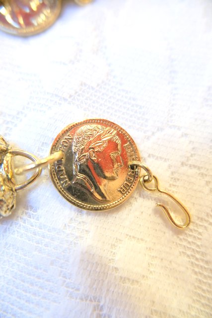 鱗のようなデザインにナポレオンのコイン付きがお洒落な1980年代頃のヨーロピアンパーティーチェーンベルト