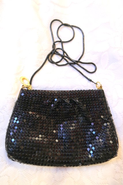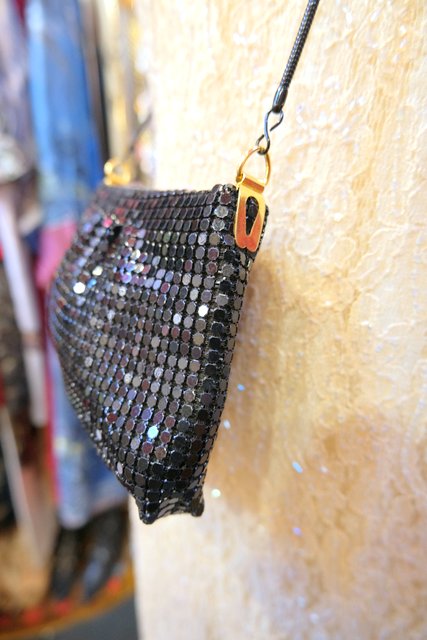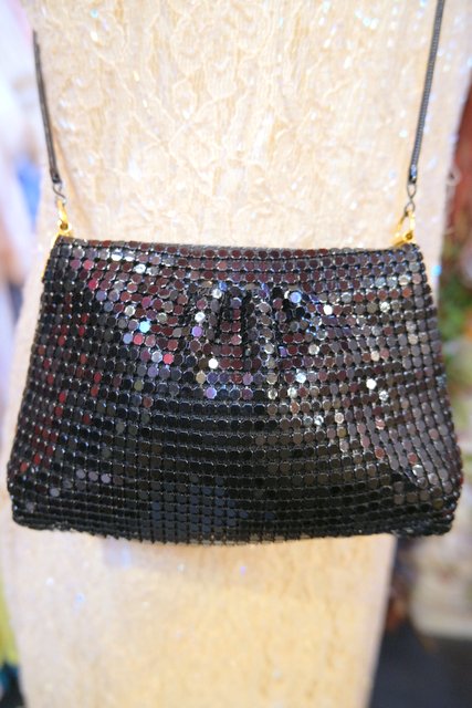 ヨーロッパ古着メタリックブラックパーティーバッグ