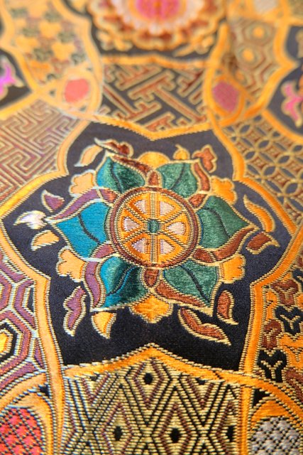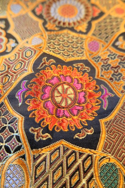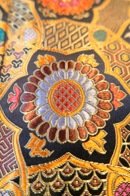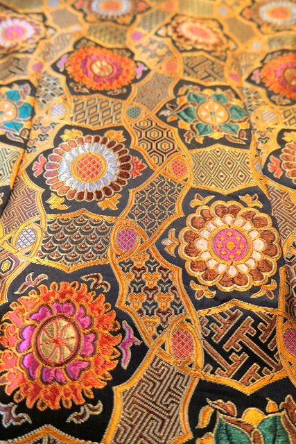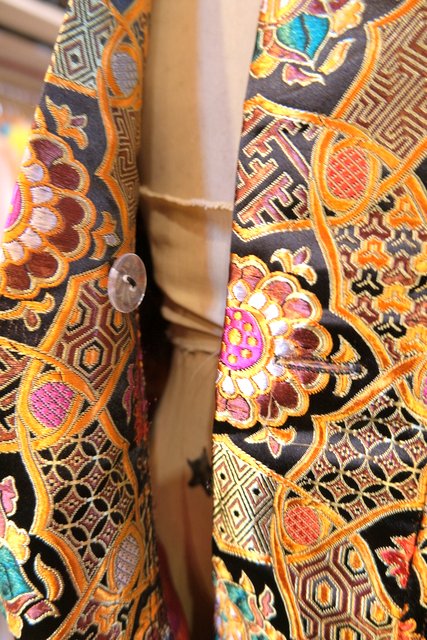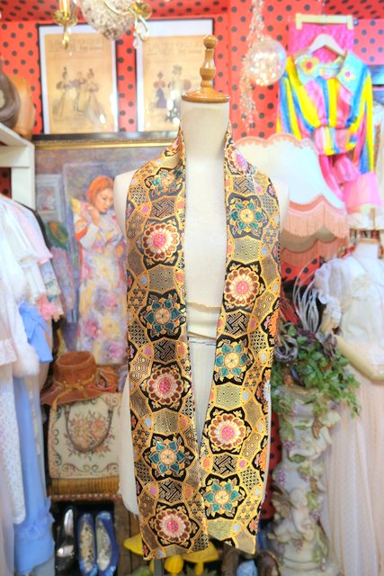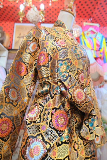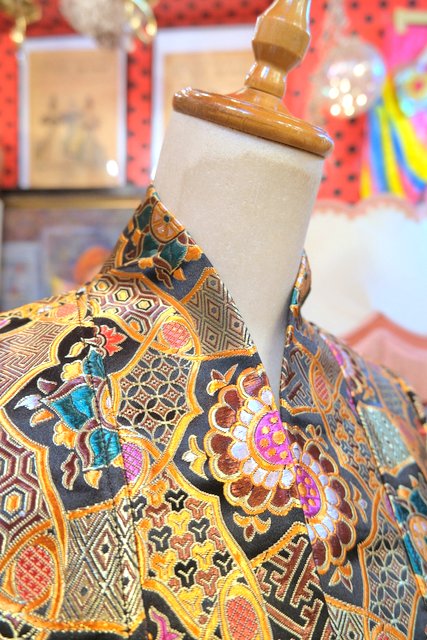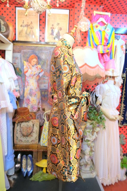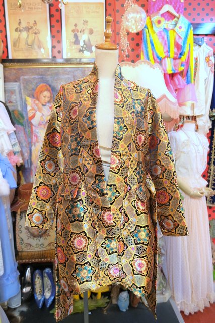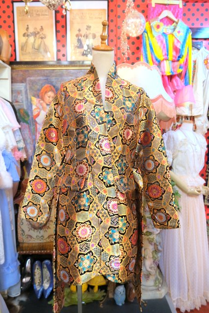光沢がある華やかな総柄に帯のような腰ひも付きがお洒落なヨーロピアンヴィンテージ羽織ジャケット イベントやパーティー衣装におススメ!