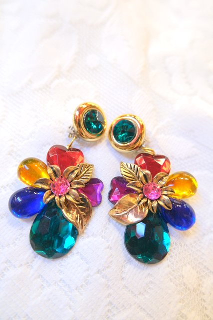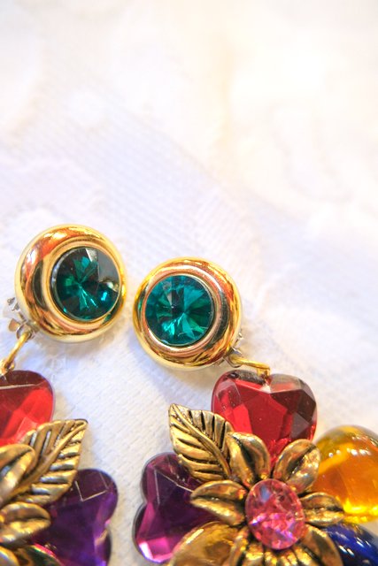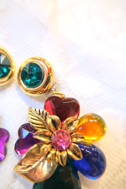 ハートなどのキラキラビジューを飾ったコスチュームのようなデザインが魅力的!スタイリングを何倍にも輝かせてくれるアムステルダムで見つけたヴィンテージイヤリング
