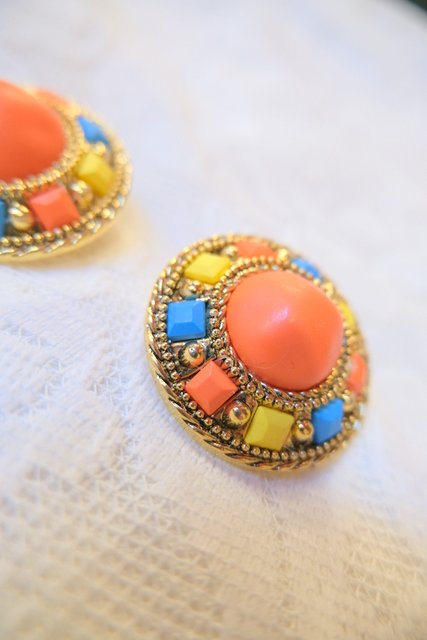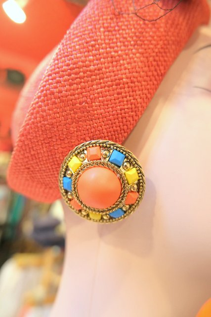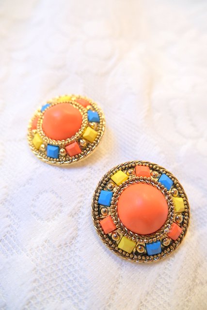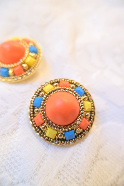 オレンジ、ゴールドベースのエキゾチックなゴージャスデザインが魅力的!スタイリングを何倍にも輝かせてくれるアムステルダムで見つけたヴィンテージピアス
