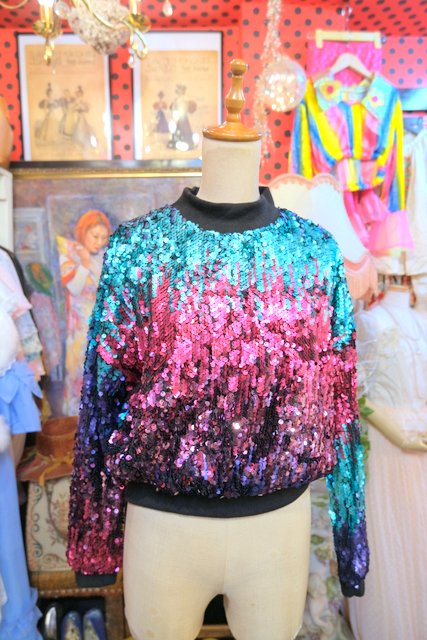 ヨーロッパ古着ファンキーカラフルスパンコールトップス