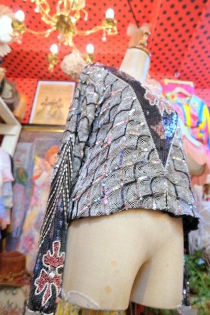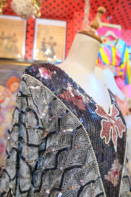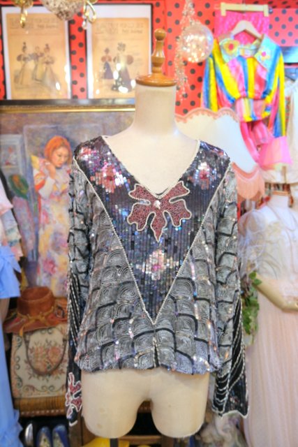 ヨーロッパ古着スパンコール装飾ヴィンテージトップス