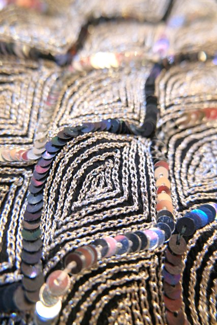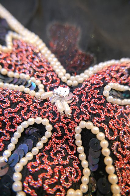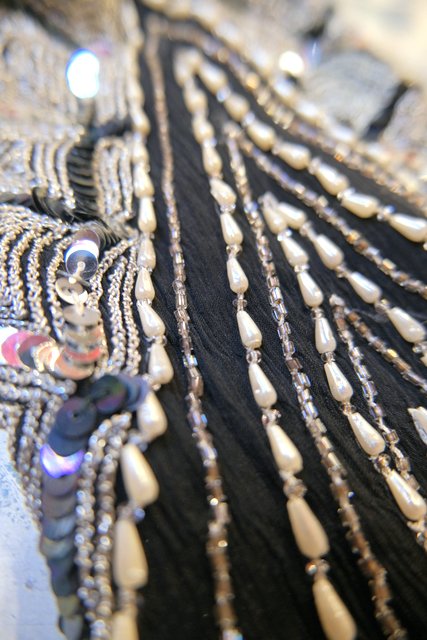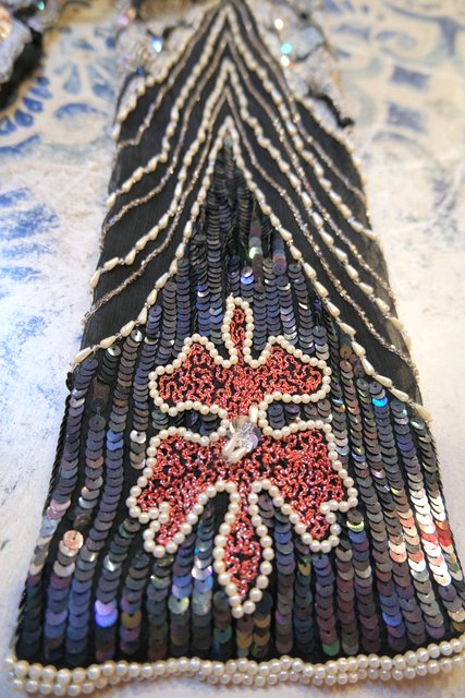 繊細な扇のようなステッチ刺繍に豪華なパールやスパンコール、ビーズ装飾が素敵な1980年代頃のヨーロピアンヴィンテージトップス