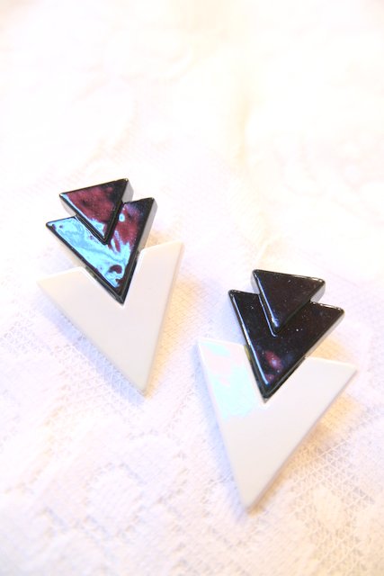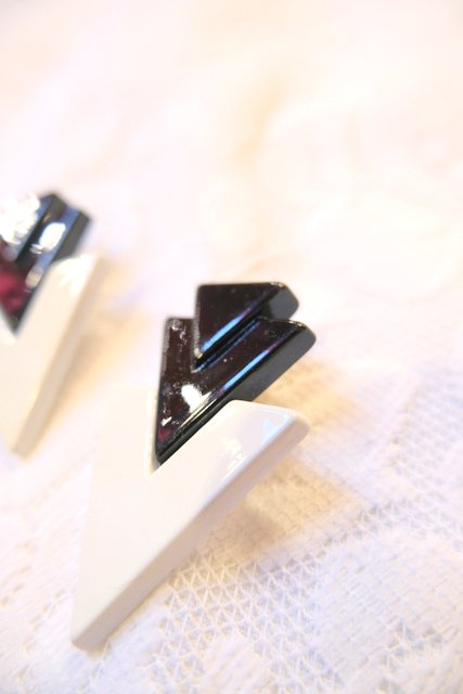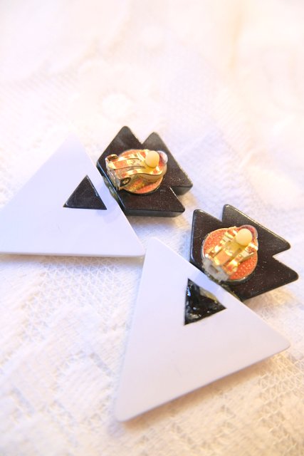 黒×白クリームの矢印のようなトライアングルデザインが素敵なアムステルダムで見つけた1970年代頃のヴィンテージイヤリング