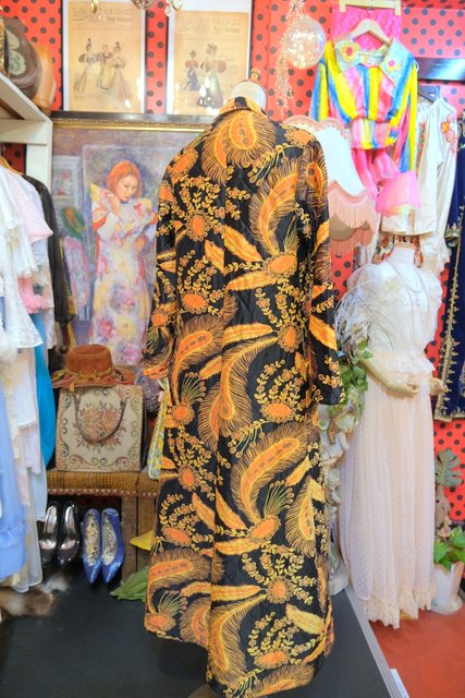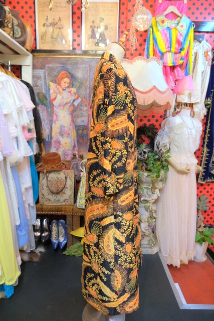 ヨーロッパ古着70sレトロ孔雀羽柄ヴィンテージガウン