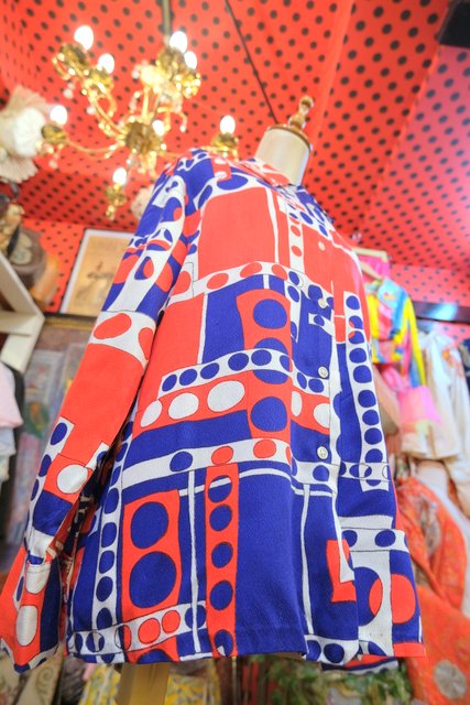 ヨーロッパ古着70sフランス製レトロポップ水玉シャツ