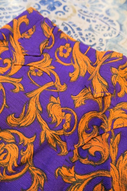 パープルベースにオレンジのエレガントなサイケデリック模様やレトロなムードに仕上がるセンタープレス×裾にかけて緩やかに広がるフレアデザインが魅力的な1960~70年代頃のウエスタンシャツの王道ブランド 「H BAR C」デッドストックパンツ