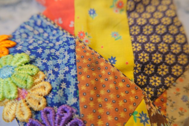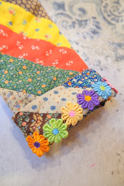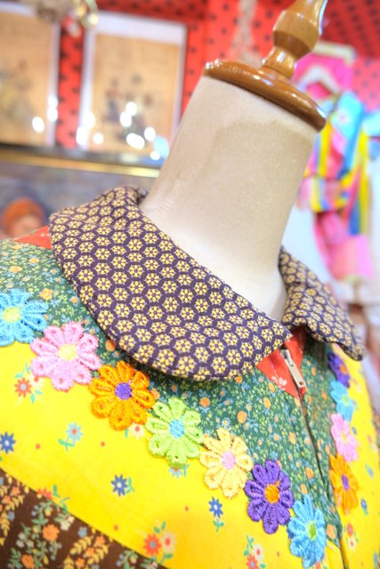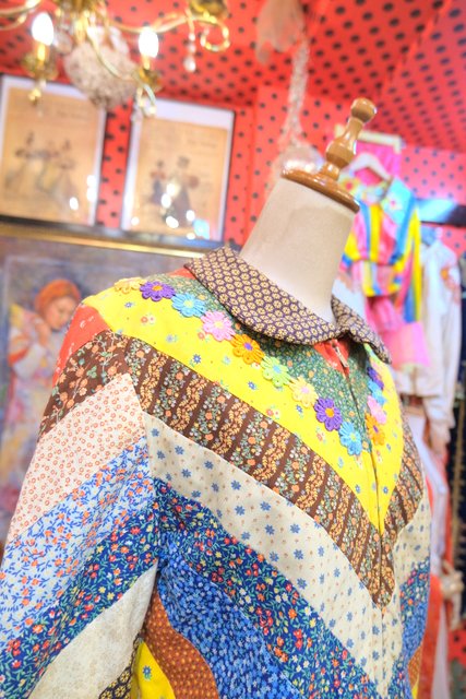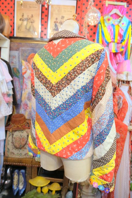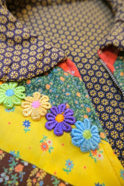 数種類のガーリーな小花柄パッチワークデザインにカラフルな花柄テープが可愛らしい1970年代頃のヨーロピアンヴィンテージキルティングジャンパー