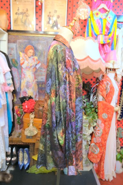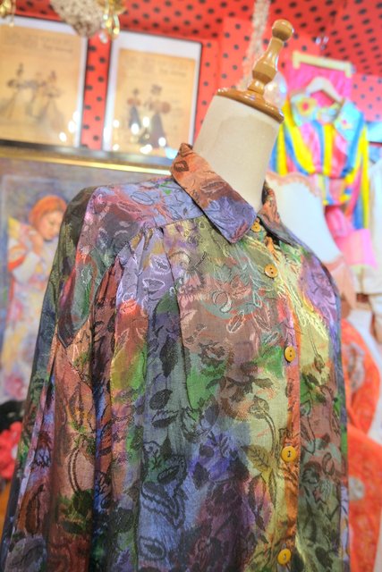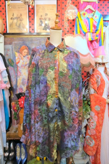 光沢感がある花柄生地×アースカラーMIXデザインが素敵な1980年代頃のヨーロピアンオーバーサイズシャツ