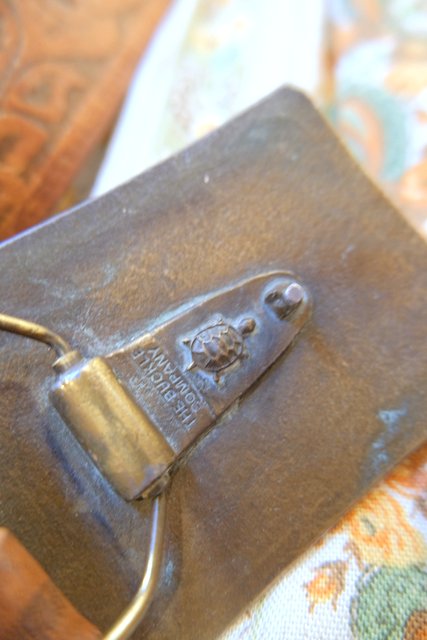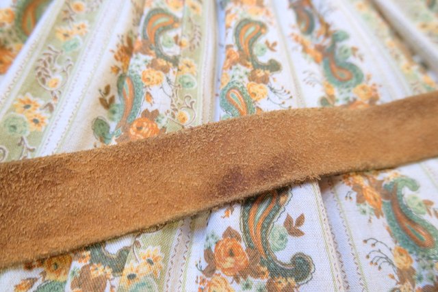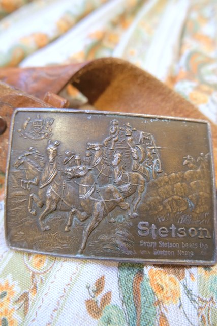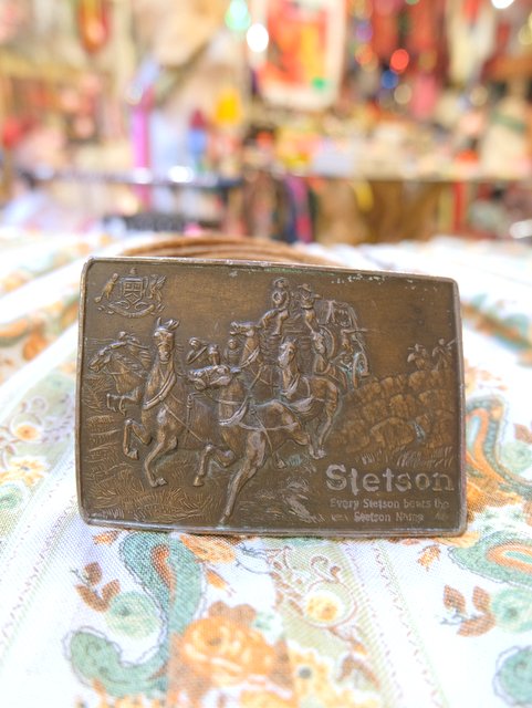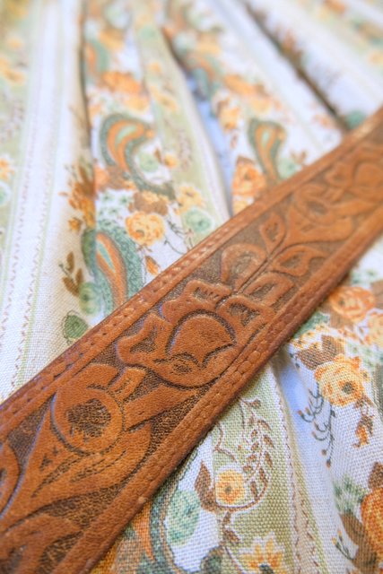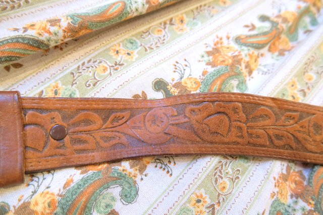 重厚感がある大きなウエスタン彫刻のバックルにヴィンテージ感漂うレザーの色落ち感が素敵なUSAカービングレザーベルト