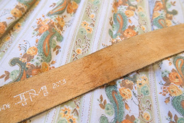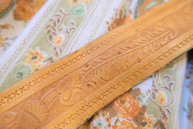 アカンサス模様やドングリのような彫刻にトラックバックルが可愛いヨーロピアンカービングレザーベルト