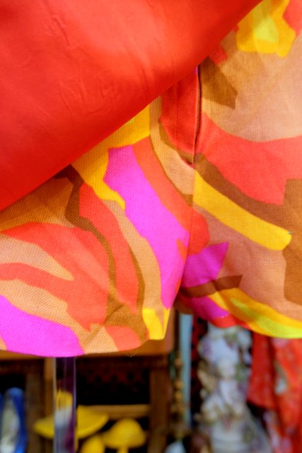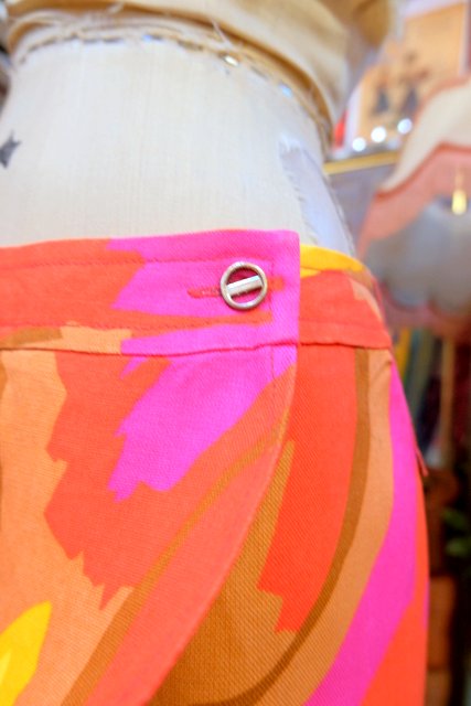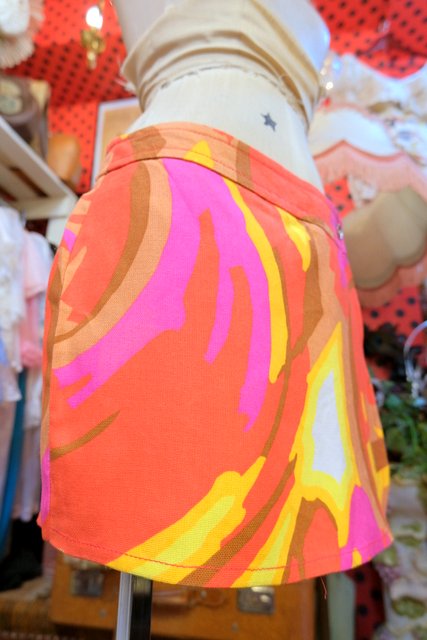 カラフルポップな総柄にミニスカートのように見えるラップデザインがお洒落な1960~70年代頃のヨーロピアンヴィンテージショートパンツ