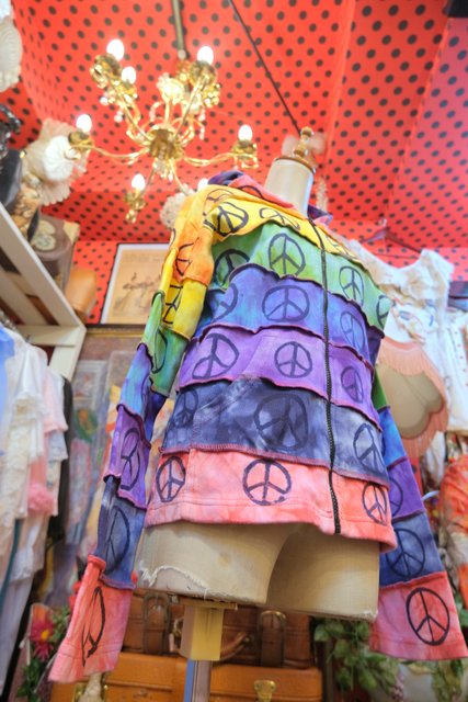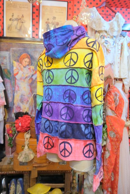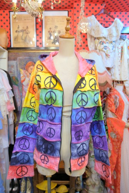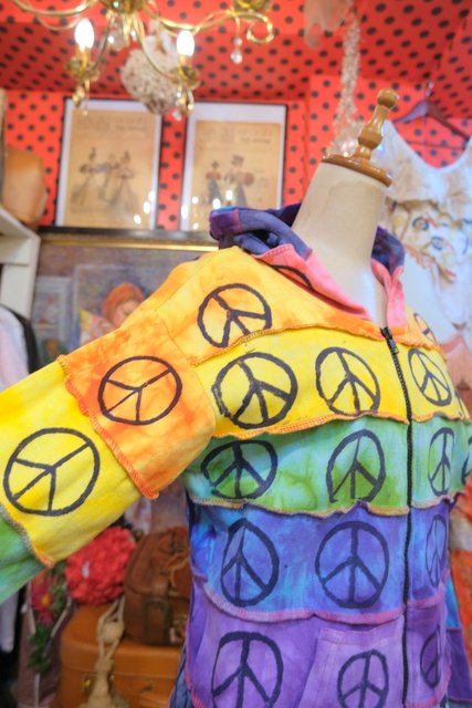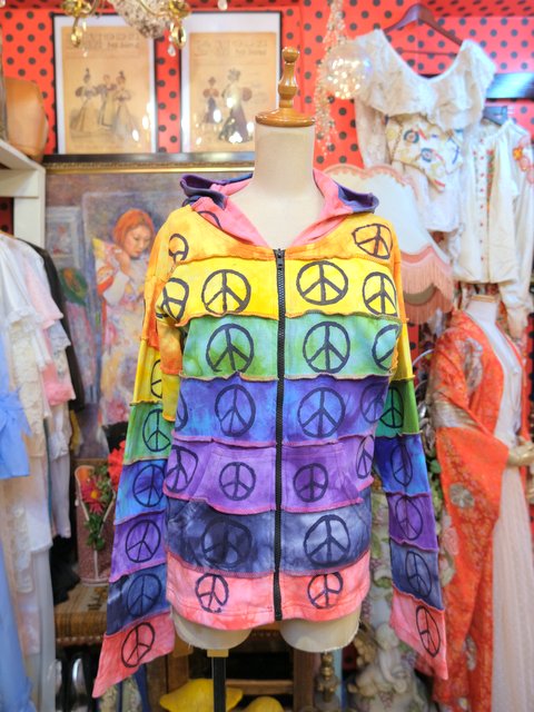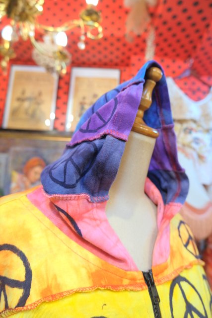 カラフルポップなタイダイ染めにピースマークが目を惹くヨーロピアンヒッピーパーカー