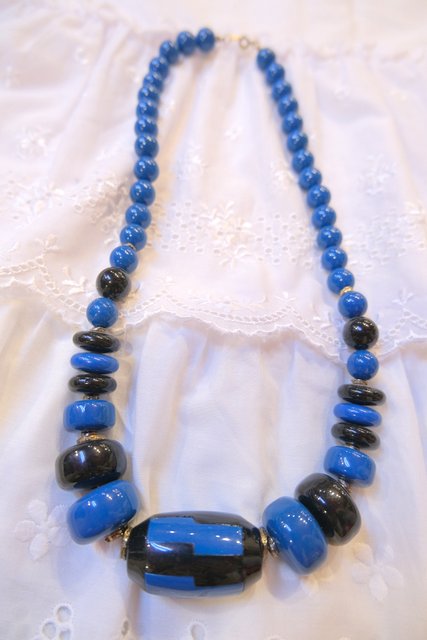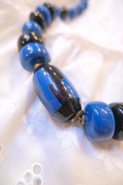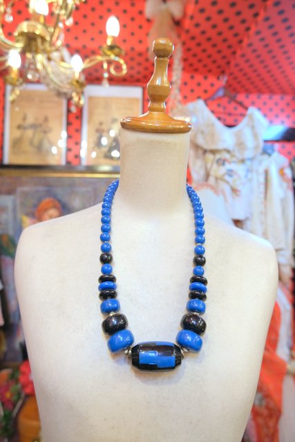 黒×ネイビーブルー色のエキゾチックなデザインが素敵なフランスで見つけた1970年代頃のヴィンテージネックレス