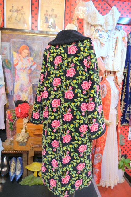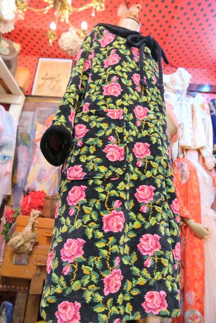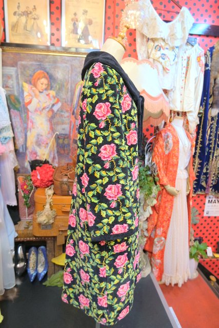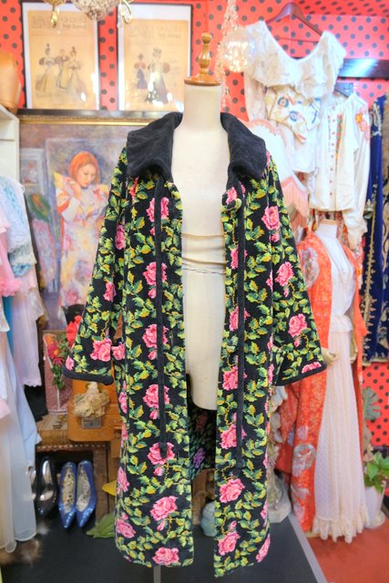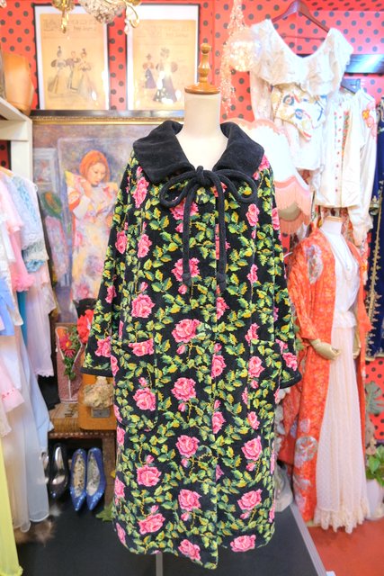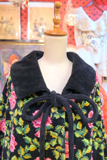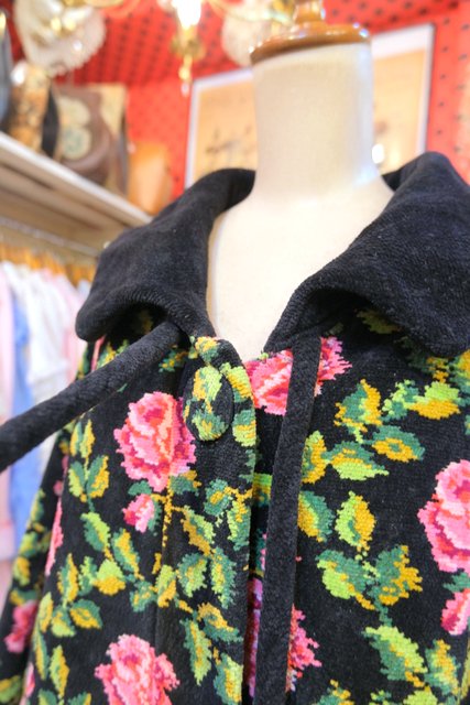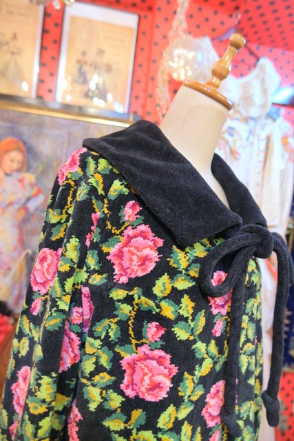 華やかな花柄に大きな襟が魅力的!厚みとベルベットのような柔らかい肌触りが特徴のドイツ高級シェニール織ブランドAl-Pa-Lohヴィンテージガウンコート
