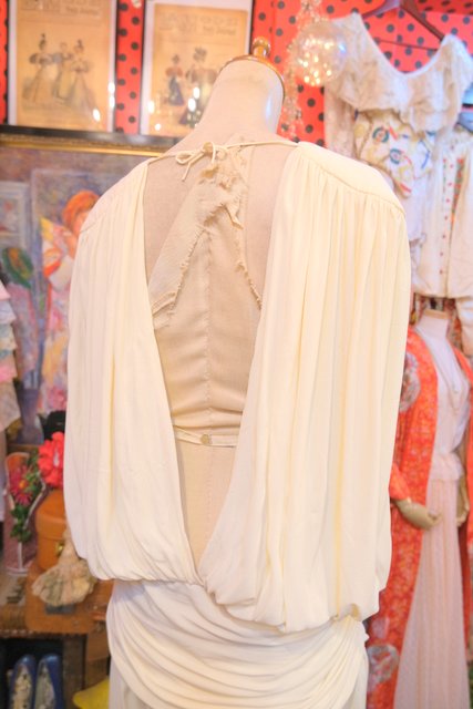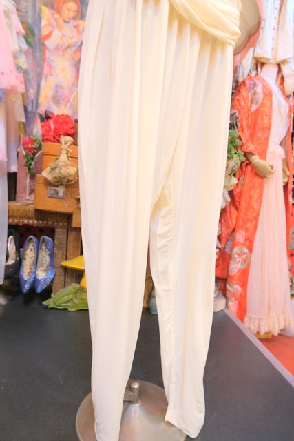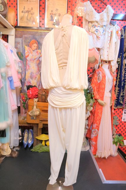 全体のドレープデザインが上品で女性らしい1980年代頃のヨーロピアンヴィンテージジャンプスーツ セクシーなバックスタイルがポイント!