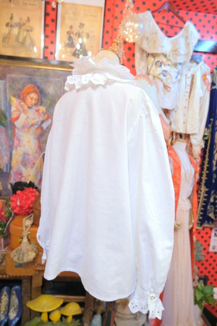 ヨーロッパ古着70sレースフリルヴィンテージブラウス