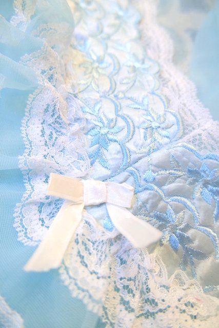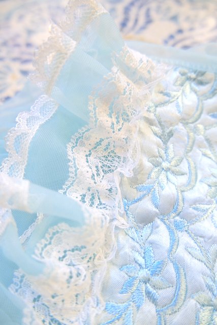 水色のシフォンに包まれるロマンティックな一枚 繊細なレースと…