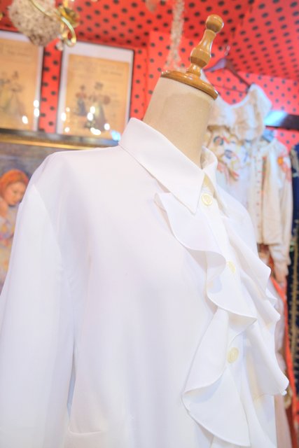 ヨーロッパ古着80sエレガントモードフリルドレスシャツ