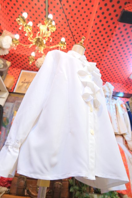 エレガントにもマニッシュな印象にもなるフリルデザインが素敵な1980年代頃のヨーロピアンオーバーサイズフリルシャツ
