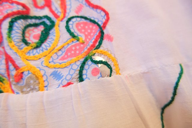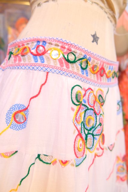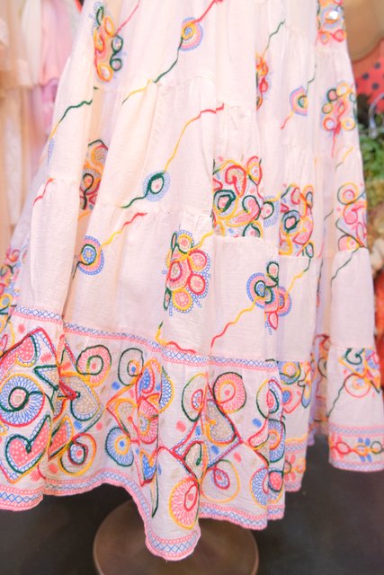 軽やかなインドコットンにふんわり広がるティアードデザイン カラフルな刺繍が目を惹くインド製ロングスカート