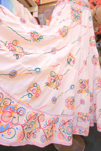 ヨーロッパ古着カラフル刺繍エスニックロングスカート