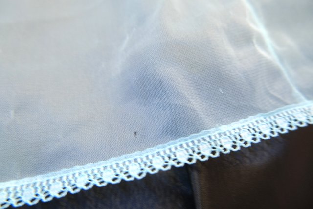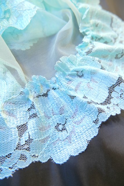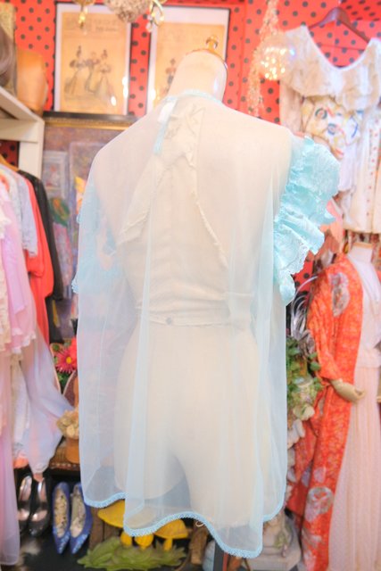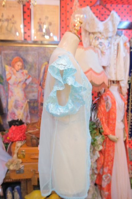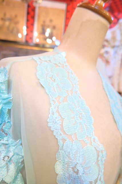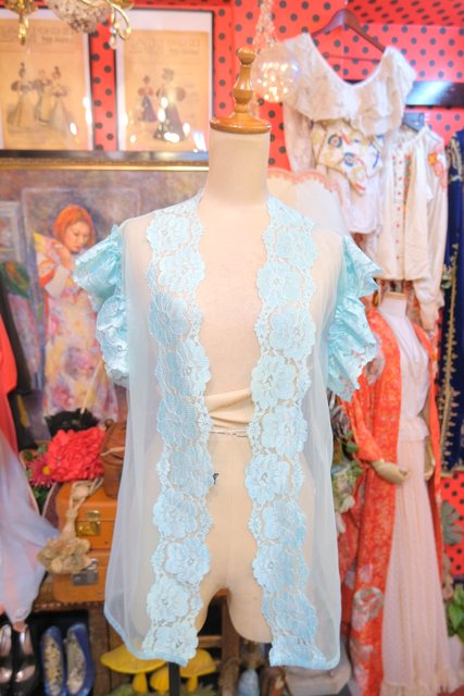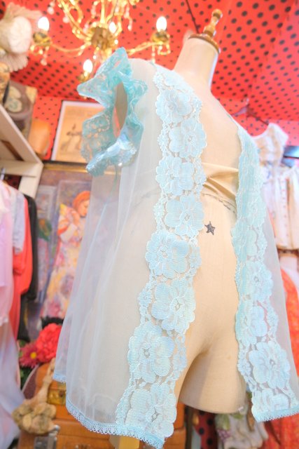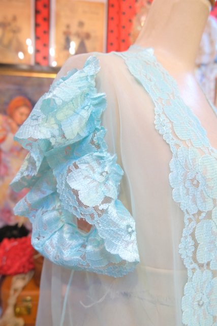 繊細な花柄レースにメルヘンな淡い水色シフォンが可愛らしい1980年代頃のUSA製ネグリジェ羽織