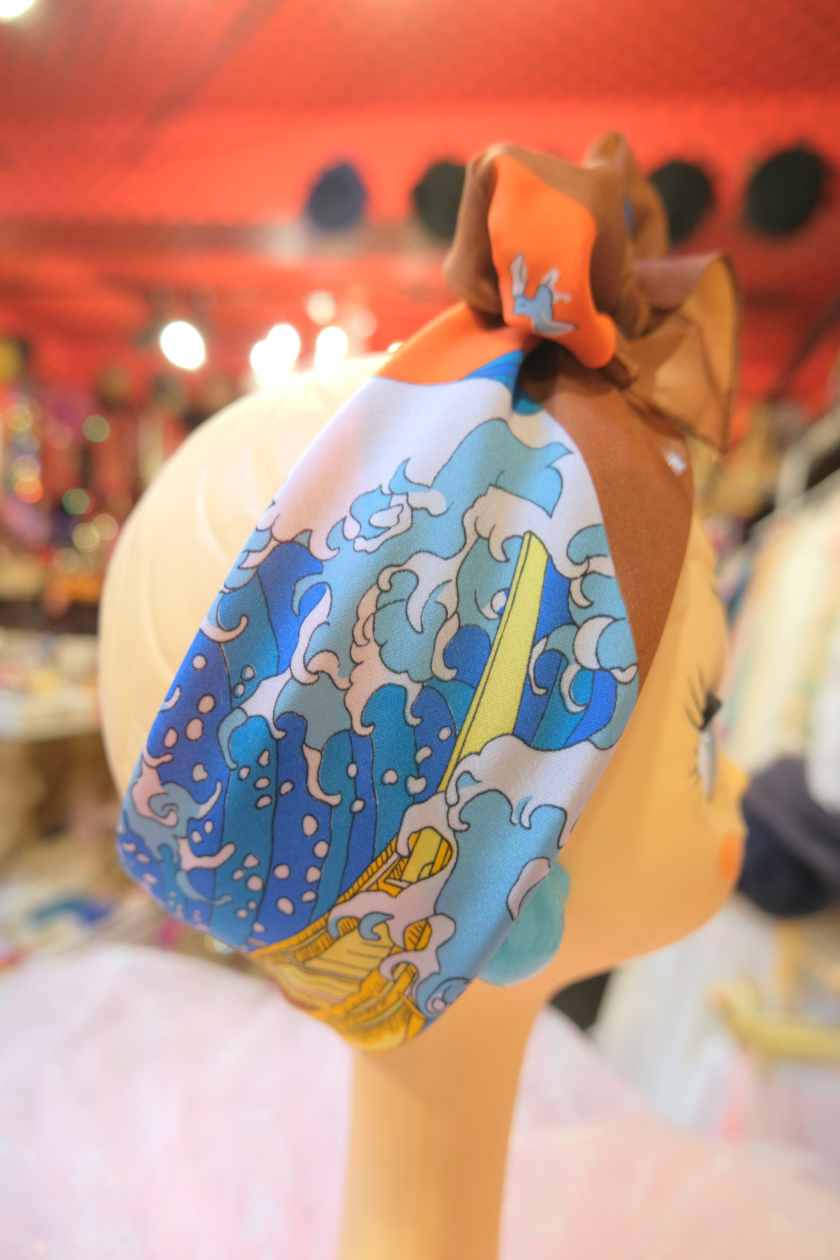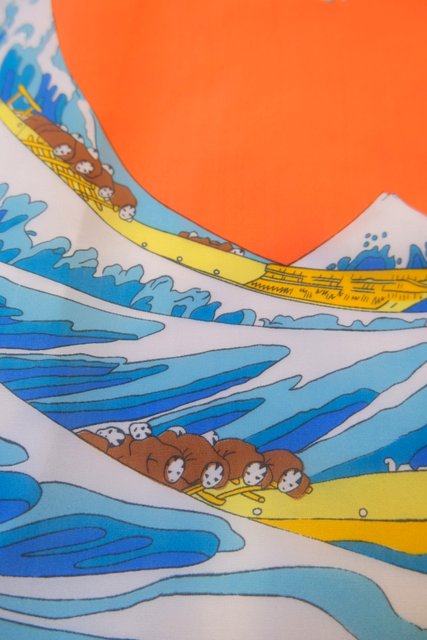 首元やバッグ、ベルト代わりに腰に巻くなどアレンジしやすい万能アイテム レトロ感たっぷりの浮世絵柄が目を惹くヨーロピアンヴィンテージスカーフ