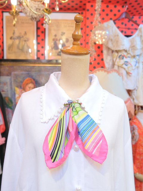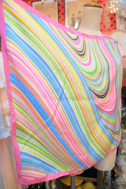 ヨーロッパ古着カラフルマーブルシルクスカーフ