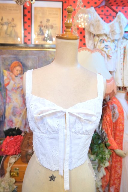 レトロガーリーなお花のカットワークレースに胸元のリボンデザインが可愛いヨーロピアンチューブトップコルセット ブラウスやワンピース、Tシャツと合わせても可愛い万能アイテム!
