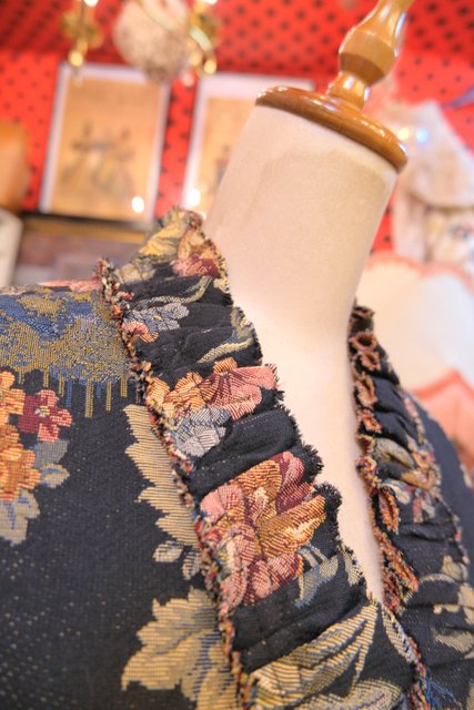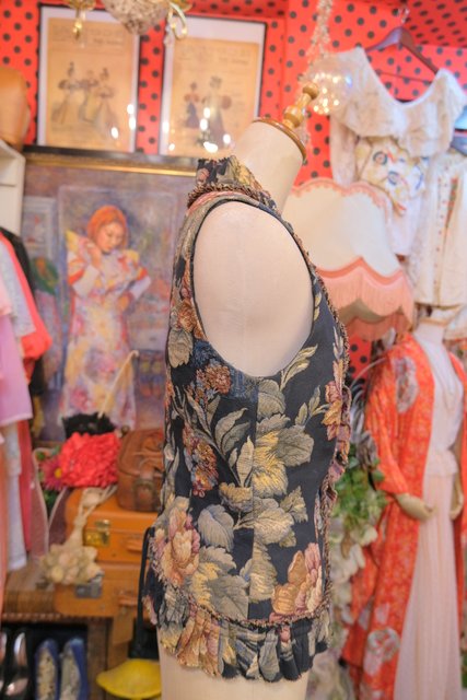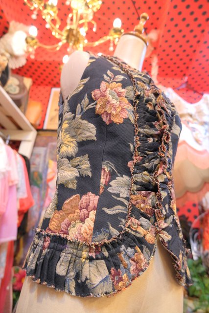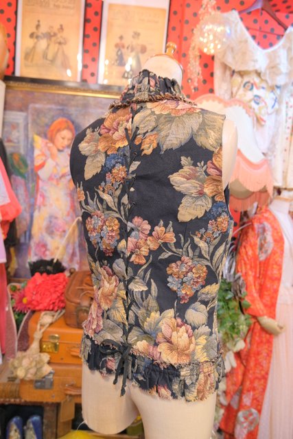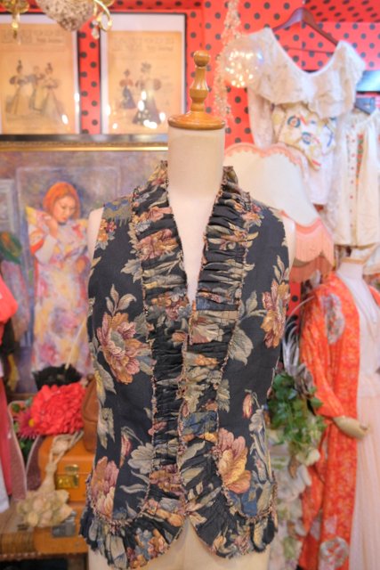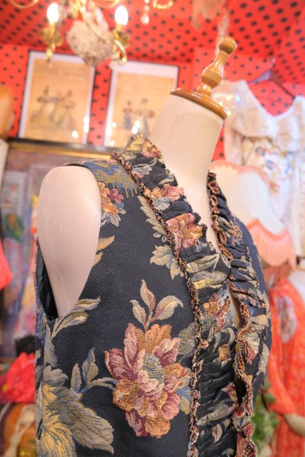 ヨーロッパ古着エレガント花柄ゴブランフリルベスト