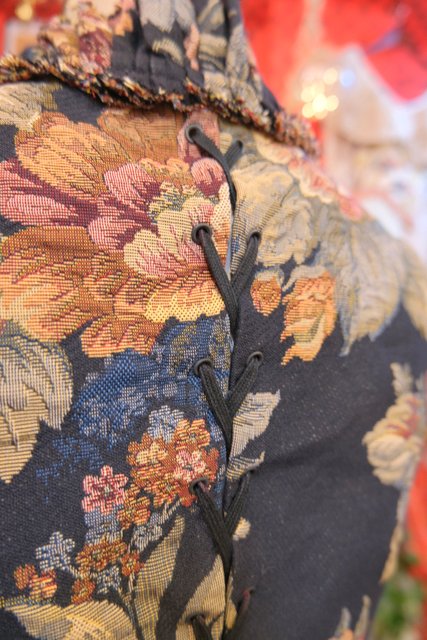 エレガントな花柄ゴブラン生地に細かいフリルデザインやバックのレースアップがお洒落なヨーロピアンゴシックベスト
