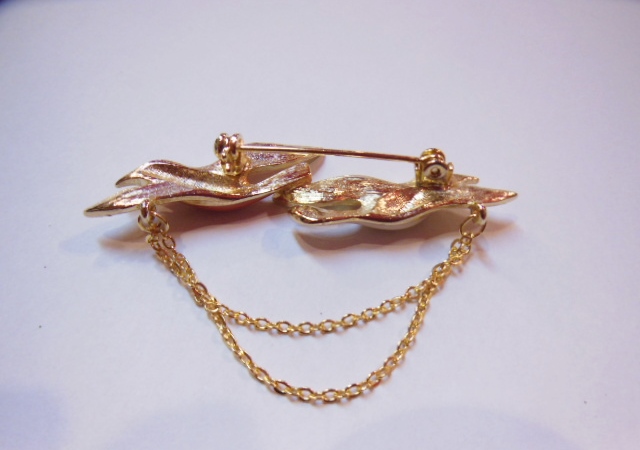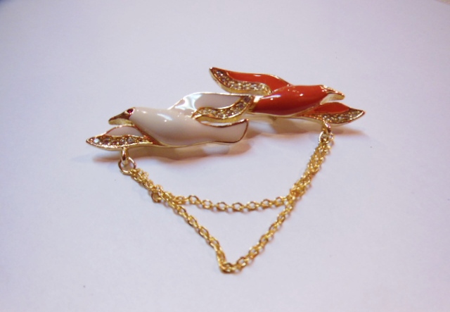 フランスのアンティークショップで見つけたレトロなカモメ柄ブローチ ユラユラ動く2連チェーンがポイント!つけ襟やブラウス、セーター、ベレー帽子などお洒落アクセントのポイントに!