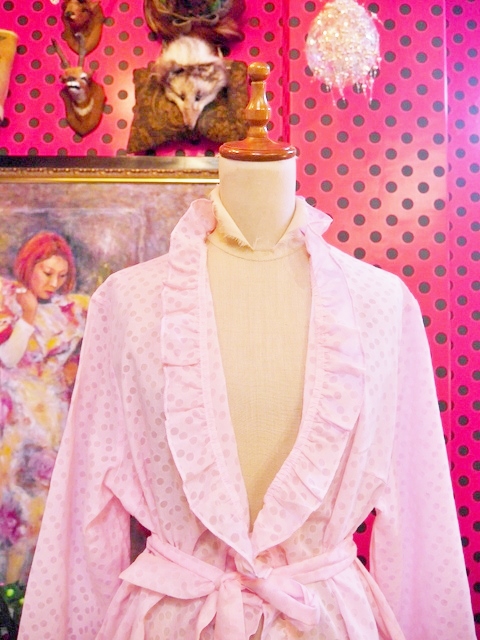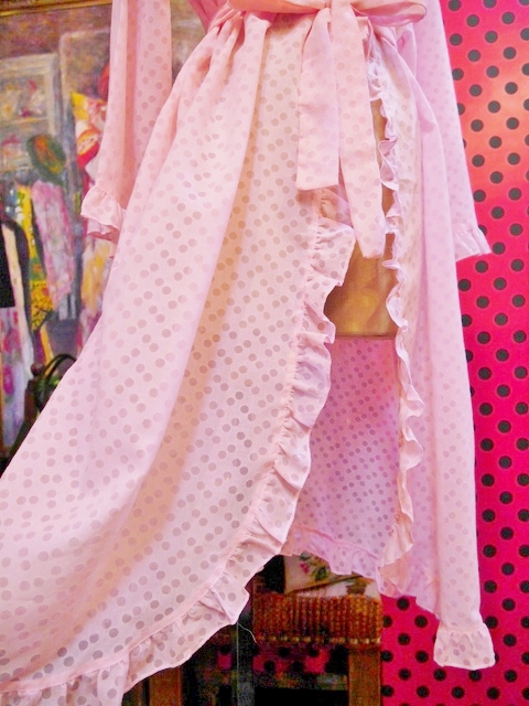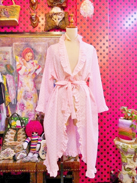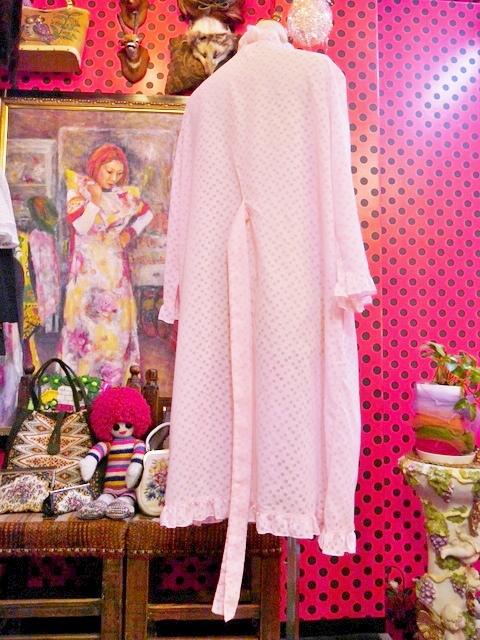 透け感のある水玉にフリルデザインが乙女心をくすぐる1970年代頃のヨーロピアンヴィンテージ羽織 ベルト付きなのでアレンジできるお洒落アイテム!★SALE★