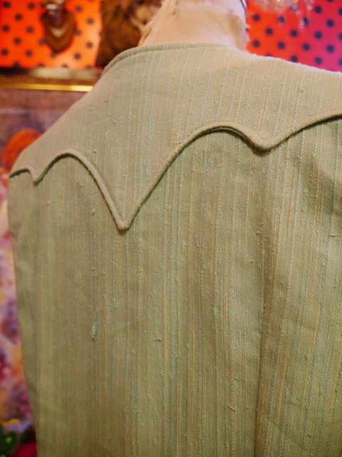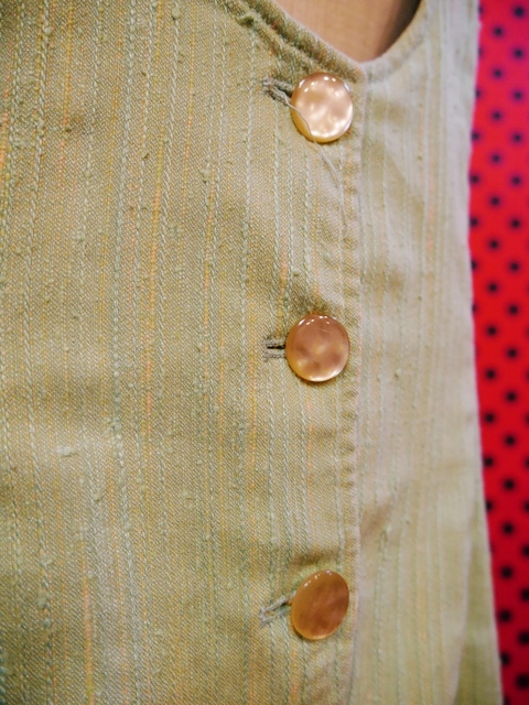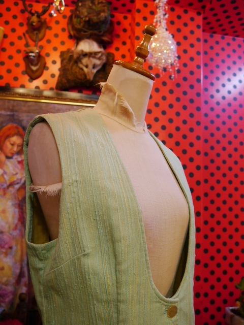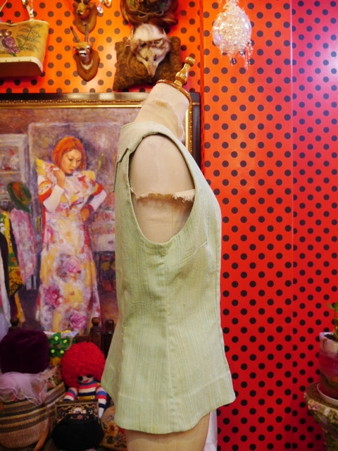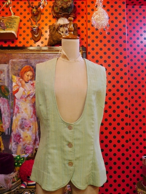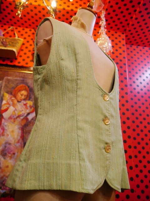 胸元が大きく開いているのでフリルブラウスと合わせるとお洒落な1960~70年代頃のヨーロピアンヴィンテージベスト ドロップのようなレトロボタンが小さなお洒落ポイント!