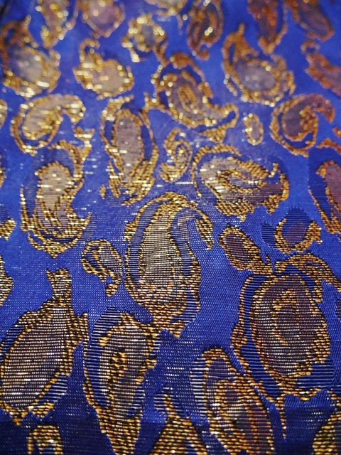 アンティーク感漂う光沢のある生地にレトロクラシカルなペイズリー柄デザインが素敵な1960年代頃のヴィンテージドレス パーティやイベント、2次会におススメ!ウエストマークでアクセントのポイントに!
