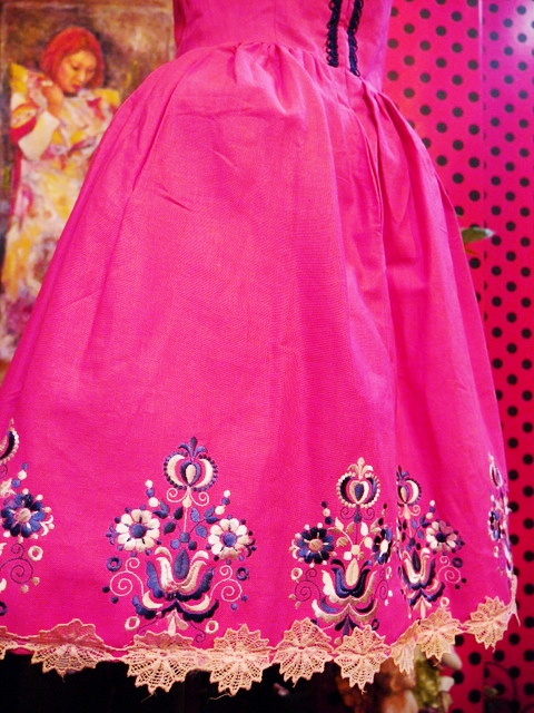 ドイツ南部からオーストリアチロル地方にかけての民族衣装ディアンドル エレガントゴージャスな花柄刺繍にレースデザインが素敵なヨーロピアンヴィンテージディアンドルドレス ★SALE★