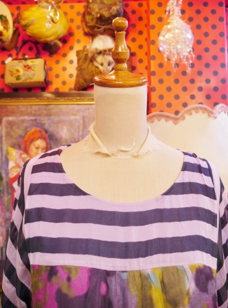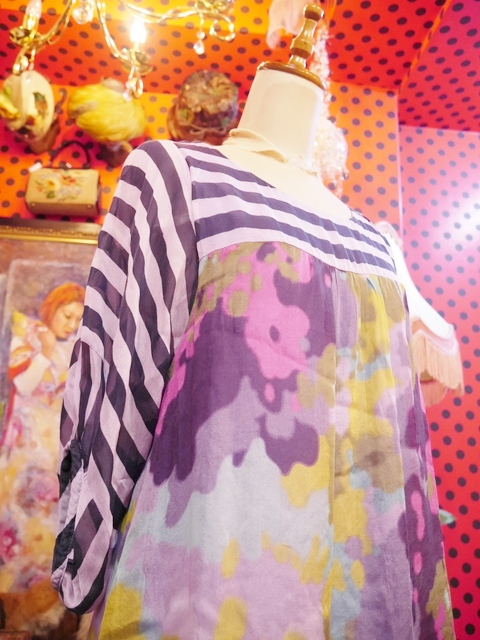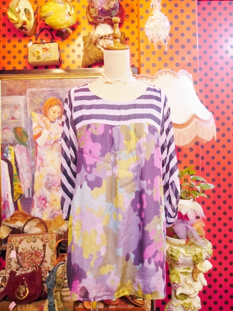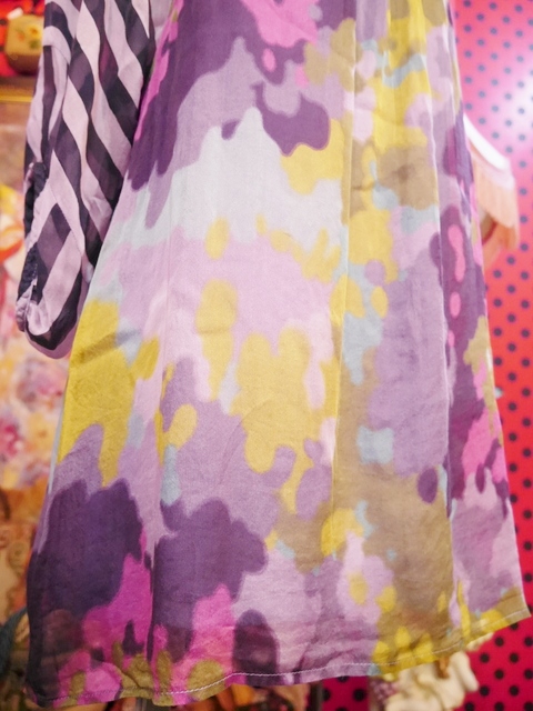 ふんわり軽やかなシルクのボーダー×タイダイデザインが個性的なヨーロピアンシフォンカットソー アクセントのポイントにウエストマークもおススメ!