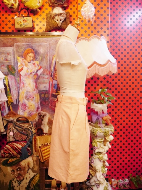 ヨーロッパ古着80sエレガンスリネンタイトスカート