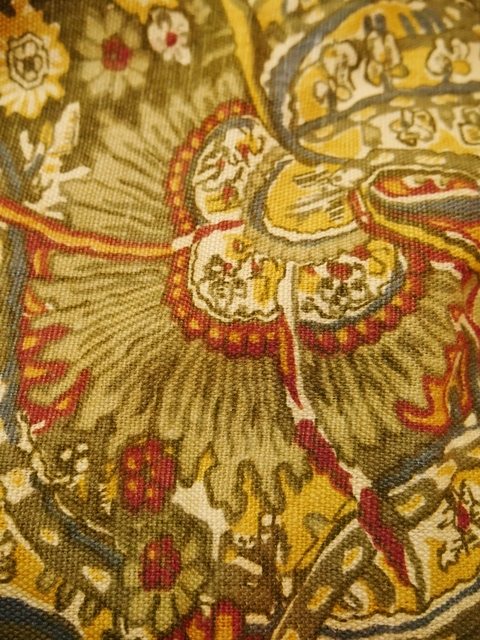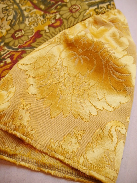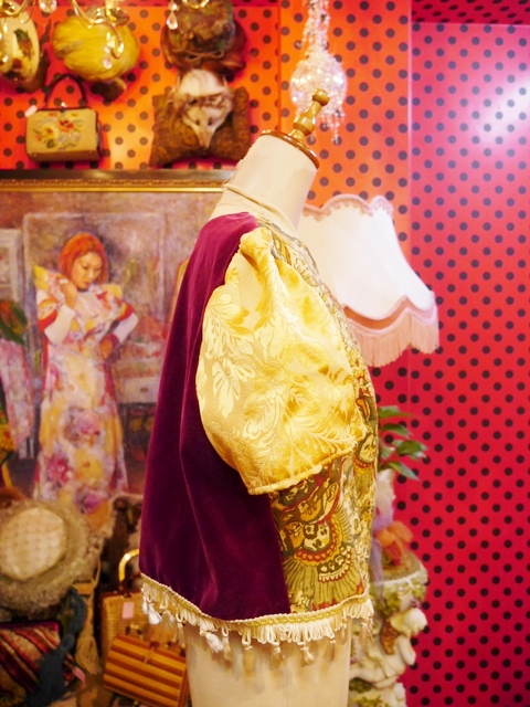 1950~60年代頃のボタニカル柄×ベロア×和柄×タッセルテープでデザインされたお洒落でユニークなヨーロピアンヴィンテージショート丈トップス ワイドパンツやタイトスカートと相性◎