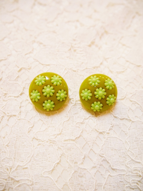 丸みがあるフォルムにレトロポップなお花が散りばめられた1960年代頃のフランスパーツでデザインされたヴィンテージイヤリング