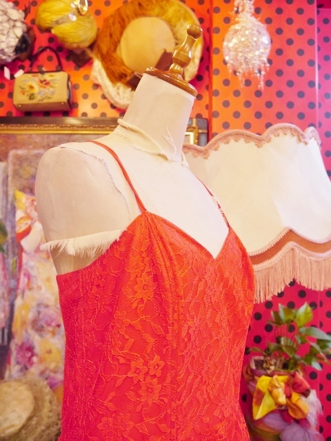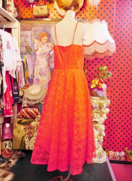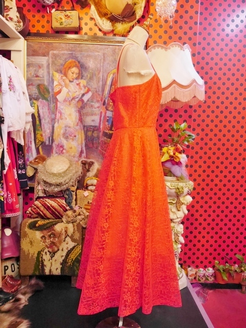 ヨーロッパ古着ヴィンテージレース赤ロングドレス